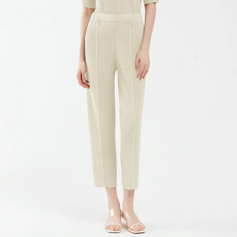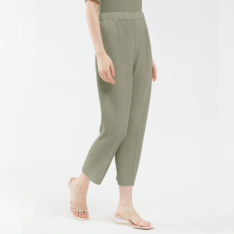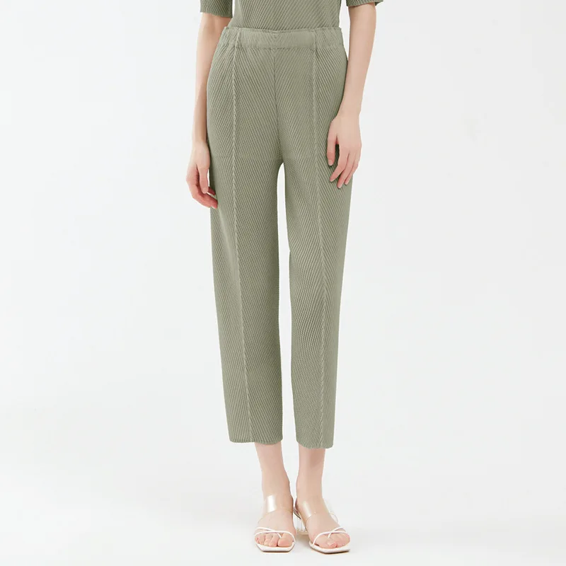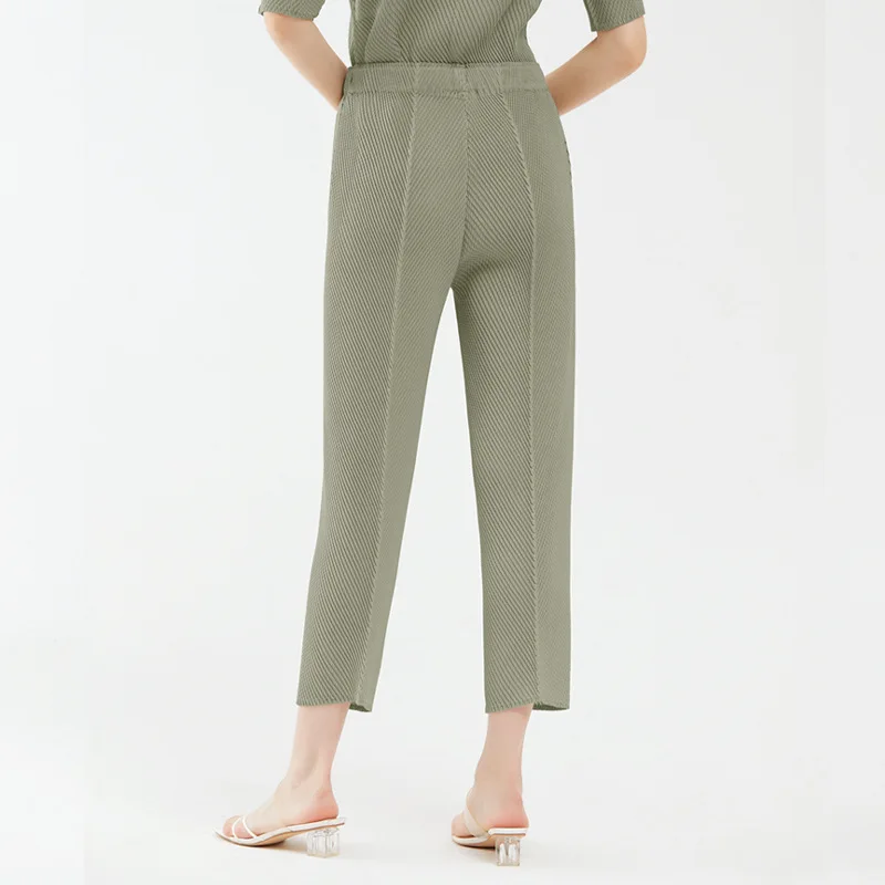 Spring and Summer New Style Fish Scale Pleats High Quality Casual Slim Trousers Loose Solid Color Pants for Women